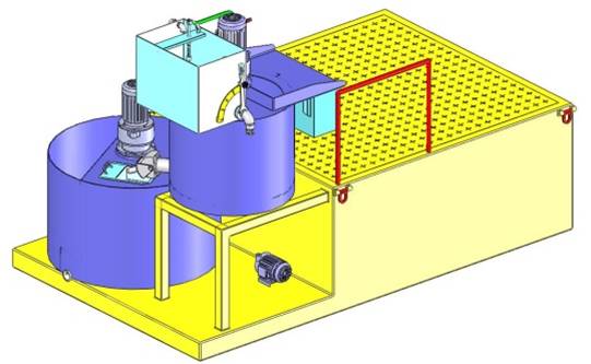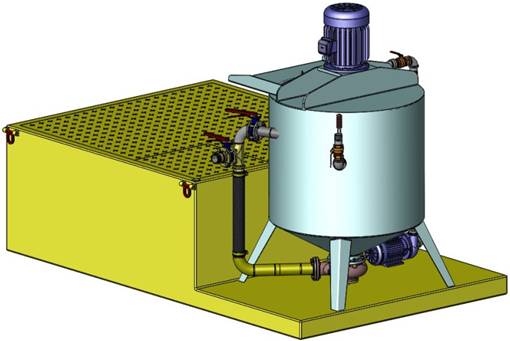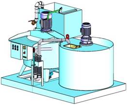mixers are integrated unit with Water Measuring and Agitator Tank (A). |